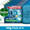 Dettol Icy Cool Bathing Soap Bar with 3xIntense Cooling Protect From 99.9% Body Odour Causing Germs (4×100 g)