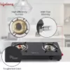 Lifelong LLGS118 ISI Certified Glass Manual Gas Stove | Manual Ignition 2 Burners Gas Stove