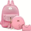 21 reviews for Small 10 L 3-PCS Fashion Cute Mini Leather Backpack sling & pouch set for Women (Pink)
